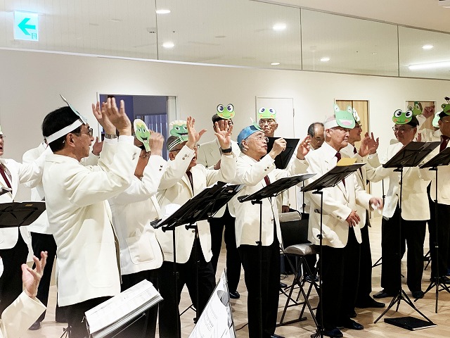 「皆さんご一緒に!!」のコーナーでは,団員と聴衆の皆さんが「琵琶湖周航の歌」の曲を一緒に歌いました。